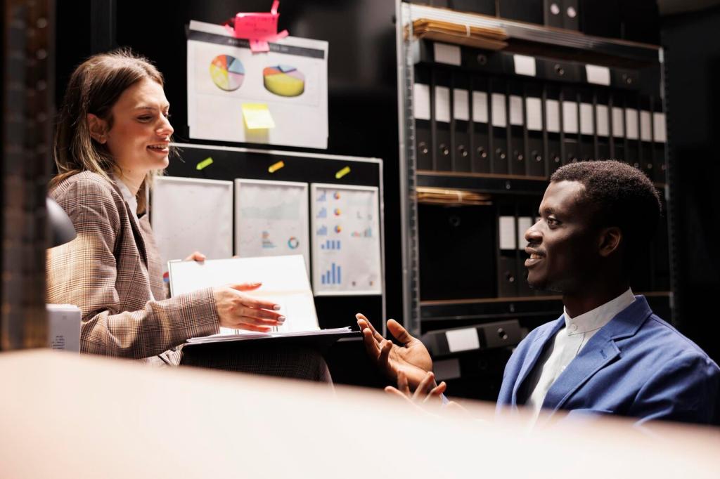 Versandetiketten, Bibliotheksstempel, alte Rechnungen oder Ausstellungsetiketten sind keine Makel, sondern historische Fäden. Sie knüpfen Lebenswege von Büchern nach. Bewahre Belege sorgfältig, ordne Chronologien und fotografiere Details. Teile deine Funde, damit andere beim Identifizieren ähnlicher Spuren dazulernen.